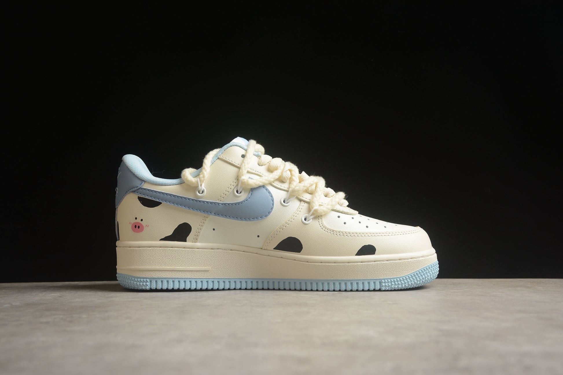 🧵 Smooth leather upper with cute “Milk Pig” graphic elements